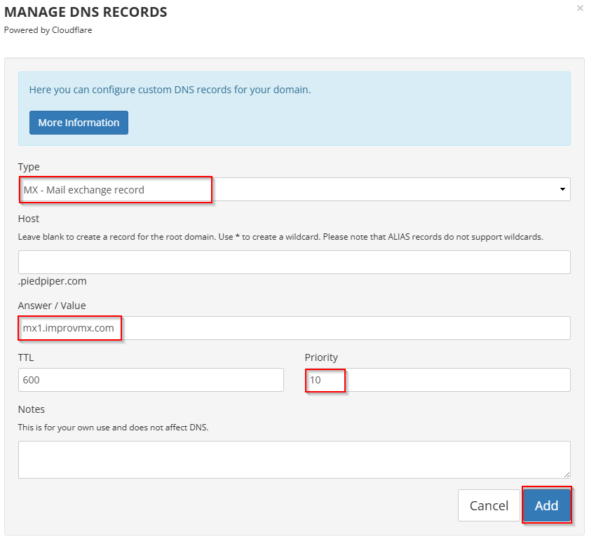 mx1.improvmx.com - Priority - 10
